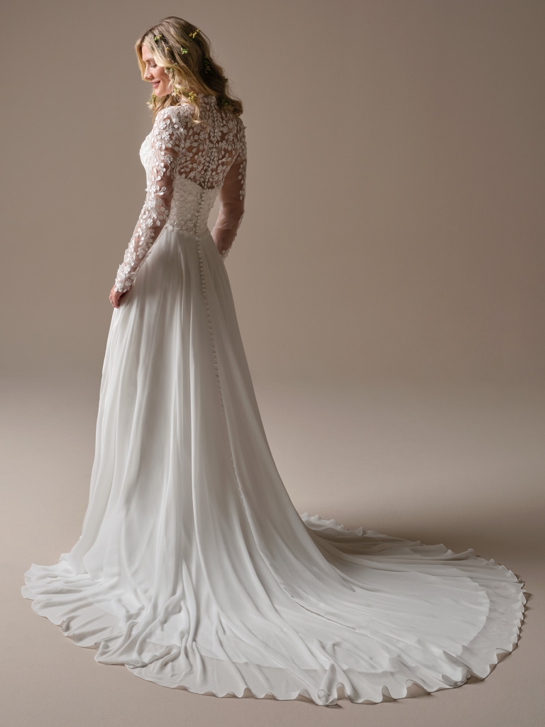 - Detachable off-the-shoulder Aurora chiffon balloon sleeves sold separately
